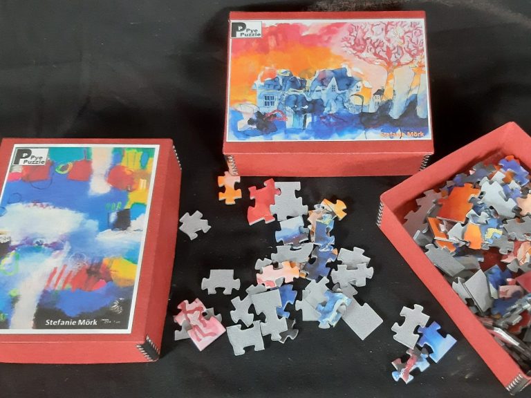 Kaufe einzigartige Kunstwerke und Materialien, die in meinem Atelier entstanden sind. Ich habe eine große Auswahl an Kunstkarten, Bildern, handgemachten Kunst-Puzzles und mein Buch "Malen zum Glück"